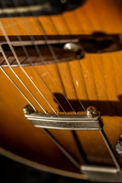 "Modèle assez rare, l'Epiphone Coronet, première génération qui n'a rien à voir avec la solid body produite par Gibson dans les années 60, fut fabriquée de 1939 à 1949. Lire la suite